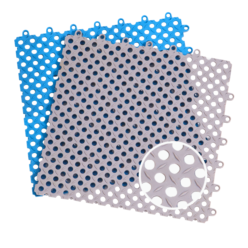 暢悠防滑地墊K7系列的優點是:1.防滑:表面個性化紋理設計,可有效增加地板與鞋底的摩擦力,防止行走時打滑。2.耐磨性:表面經過特殊處理,具有高度耐磨性,可承受重量和磨損。3.防污:防水防潮,易于清潔,也不容易滋生細菌。4.安裝簡單:采用卡扣拼接設計。